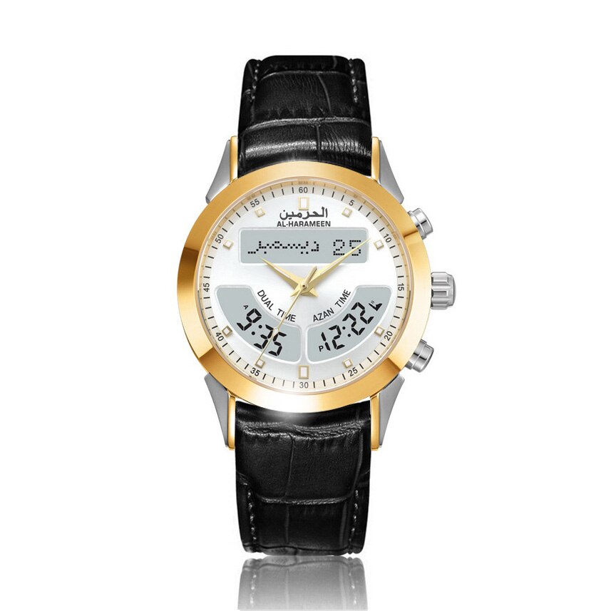 Al-Harameen Hybride Horloge RVS Leren Band